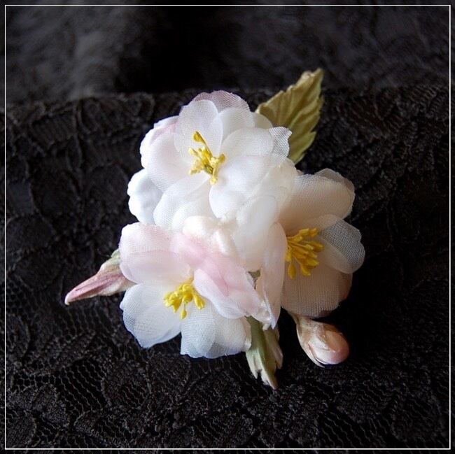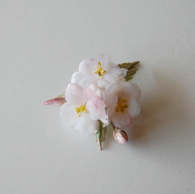 布花 桜のコサージュ(本絹シルクサテン使用)