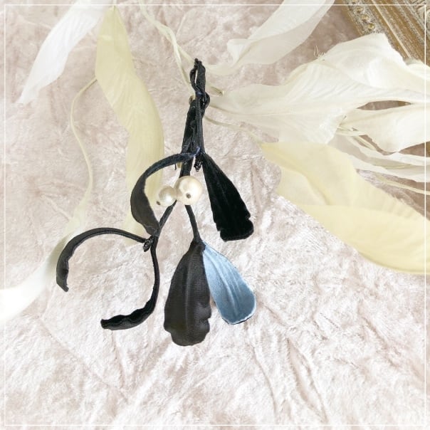 黒とグレーのリーフにパール調の実をつけ、サイズは小さめに仕立てました。