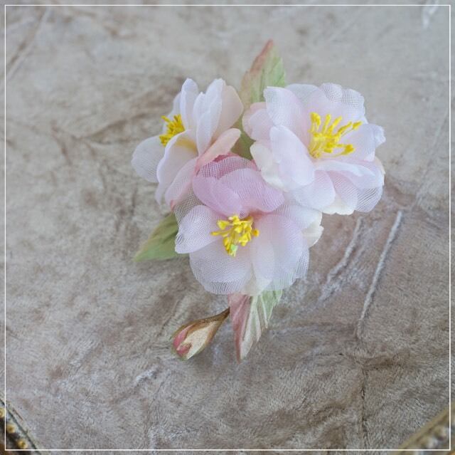 シルクの花弁と葉は裏貼りをし、丁寧に仕上げました。